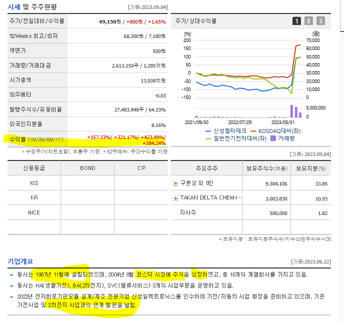 -동사는 1987년 11월에 설립되었으며, 2004년 8월 코스닥 시장에 주식을 상장하였고, 총 16개의 계열회사를 가지고 있음. 동사는 HA(생활가전), BA(2차전지), SVC(물류서비스) 3개의 사업부문을 운영하고 있음. 2022년 전자회로기판모듈 설계/제조 전문기업 신성일렉트로닉스를 인수하여 가전/자동차 사업 확장을 준비하고 있으며, 기존 가전사업 및 2차전지 사업과의 연계 발판을 넓힘.