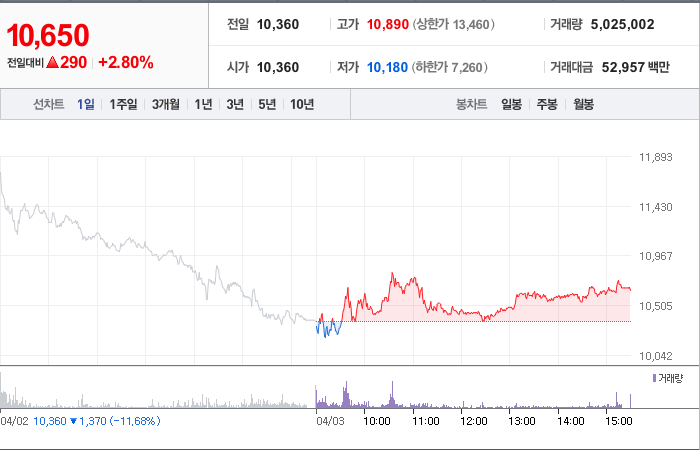 비올은 의료 장비 및 서비스 기업으로, 현재 주가는 10,360원입니다. 전일 대비 -1,370원으로 하락한 상태입니다. 주주 현황을 살펴보면 디엠에스 외 4인이 지분의 36.87%를 소유하고 있습니다. 비올의 시가 총액은 6222억 원이며 발행 주식수는 58,419,125주입니다. 외국인 보유 비중은 2.65%이고, 장중 거래량은 6,823,258주입니다. 또한, 비올은 매출액으로 425억 원을 달성했습니다.
