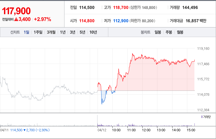 HD현대중공업의 현재 주가는 114,500원이며 전일 대비 -2,700원으로 하락하였습니다. 그리고 HD현대중공업의 대주주는 에이치디한국조선해양(외 1인)으로 지분 78.02%를 소유하고 있습니다. HD현대중공업은 조선 기업으로서, 현재 주가는 114,500원입니다. 시가 총액은 10조4664억 원이며 발행 주식수는 88,773,116주입니다. 외국인 보유 비중은 7.90%이며, 장중 거래량은 153,613주를 기록했습니다. 또한, HD현대중공업은 매출액으로 119,639억 원을 달성하였습니다.