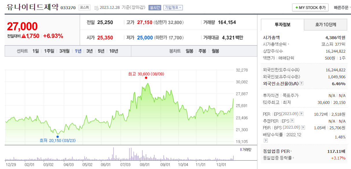 이 글에서는 유나이티드제약 주가 전망과 목표 주가, 기업 정보에 대해서 설명합니다. 주식 투자의 중심은 미래의 기업 가치를 예측하고 선제적으로 움직이는 것입니다. 투자할 종목을 고르기 전에 현재 기업 상태와 지표를 살펴야 합니다. 유나이티드제약 주식의 주요 현황과 투자 정보를 확인하시고 주식 투자에 도움이 되는 정보들을 모아 제공하니 투자에 도움을 받으실 수 있을 것입니다..