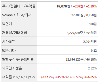 한국석유 현재 주가는 18,070원이며 전일 대비 원의 모습을 보이고 있습니다. 한국석유의 주주현황을 살펴보면 강승모(외 17인)이 지분 49.88%를 소유하고 있습니다. 한국석유는 화학 기업으로 장중 기준으로 주가는 18,070원 입니다. 한국석유의 시가 총액은 2294억 원이며 발행 주식수는 2.52주 입니다. 외국인 보유 비중은 3,279,546% 이며 장중 거래량은 12,694,120를 기록했습니다. 매출액은 6,792억 원, 영업이익은 180억 원을 달성했습니다. EPS는 없음원이며 한국석유 주식 배당수익률은 95% 입니다.