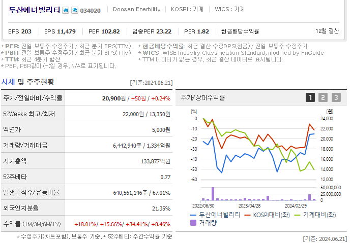 이 글에서는 두산에너빌리티 주가 전망과 목표 주가, 기업 정보에 대해서 설명합니다. 주식 투자의 핵심은 현재의 기업 가치보다는 미래의 가치를 예측하며 먼저 대응하는 것입니다. 투자 대상을 결정하기 위해 먼저 현재 기업 상태와 수치를 검토해야 합니다. 두산에너빌리티 주식의 주요 현황과 투자 정보를 확인하시고 주식 투자에 도움을 줄 자료들을 모아두었으니 참고하여 효율적인 투자를 해보세요..