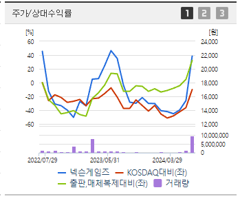 -2024년 3월 전년동기 대비 연결기준 매출액은 0.9% 증가, 영업이익은 80.6% 감소, 당기순이익 적자전환. 2023년 출시한 대만, 중국에 'HIT2'와 'Blue Archive'가 런칭에 성공하였고 글로벌 진출도 가속화됨에 따라 지속적인 성장세 보임. 미래성장동력을 위하여 The First Descendant(루트 슈터 장르의 PC&콘솔 멀티 플랫폼 게임), 갓썸(모바일 기반의 MMORTS) 등 신규 게임 개발에 집중.