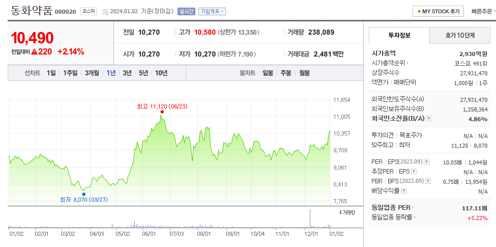 동화약품 주가 분석