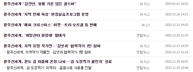 -2023년 9월 전년동기 대비 별도기준 매출액은 4% 감소, 영업이익은 20.6% 감소, 당기순이익은 8.9% 감소. 광주종합버스터미널(유스퀘어)과 연결·증축 하여 현재의 4배 규모 랜드마크 건설 예정이며 2028년 상반기 정식 개장 예정임. 광주시 금호고속과 업무협약을 체결상태이며 에르메스, 루이비통, 샤넬이 입점할 예정임. 동종 산업 군에서 높은 영업 이익률을 보이고 있음.