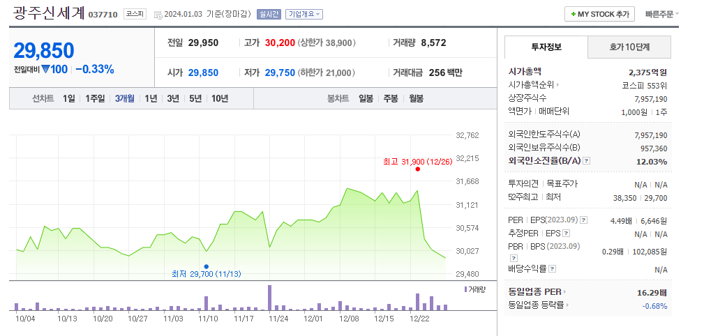 이 글에서는 광주신세계 주가 전망과 목표 주가, 기업 정보에 대해서 설명합니다. 주식 시장에서 중요한 것은 미래의 기업 가치를 예측하고 선제적으로 움직이는 것입니다. 투자 대상을 선택하기 전에 현재 기업의 현황과 데이터를 확인하는 것이 필요합니다. 광주신세계 주식의 주요 현황과 투자 정보를 확인하시고 주식 투자에 도움을 줄 자료들을 모아 두었으니 투자에 도움을 받으시길 바랍니다..