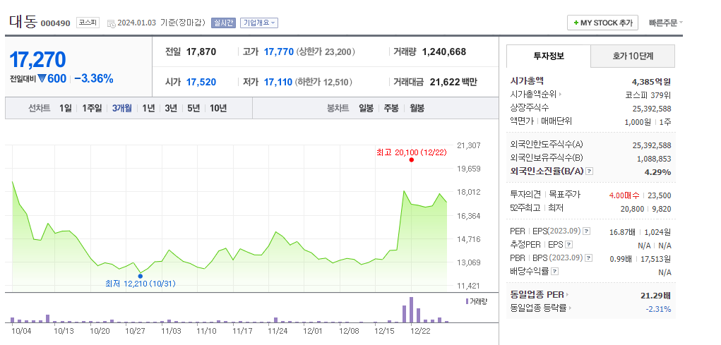 이 글에서는 대동 주가 전망과 목표 주가, 기업 정보에 대해서 설명합니다. 주식 시장에서 중요한 것은 미래의 기업 가치를 예측하고 선제적으로 움직이는 것입니다. 투자 대상을 선택하기 전에 현재 기업의 현황과 데이터를 확인하는 것이 필요합니다. 대동 주식의 주요 현황과 투자 정보를 확인하시고 주식 투자에 도움이 되는 정보들을 모아 제공하니 투자에 도움을 받으실 수 있을 것입니다..