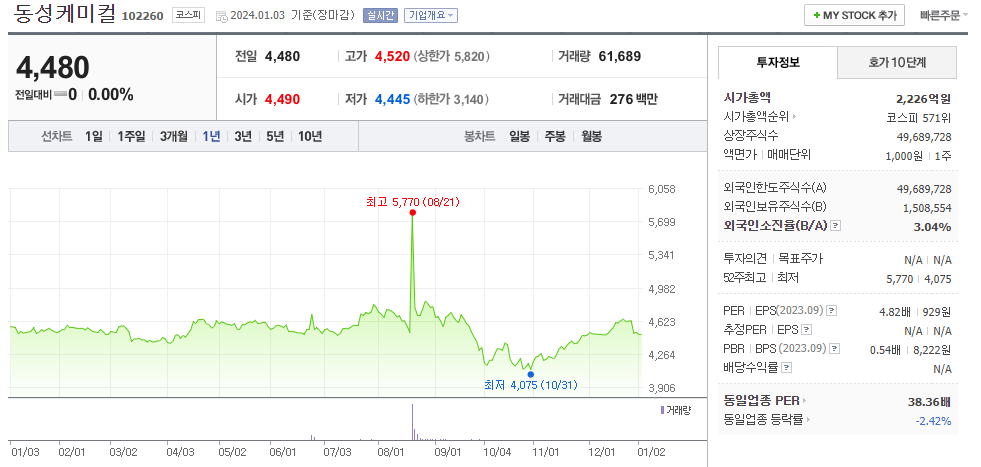 동성케미컬 주식 결론