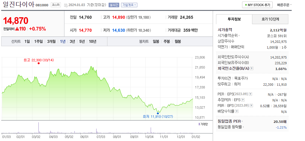 이 글에서는 일진다이아 주가 전망과 목표 주가, 기업 정보에 대해서 설명합니다. 주식 투자에서 핵심은 미래의 기업 가치를 예상하고 선제적으로 움직이는 것입니다. 투자 대상을 결정하기 전에 현재 기업의 현황과 수치를 검토하는 것이 필요합니다. 일진다이아 주식의 주요 현황과 투자 정보를 확인하시고 주식 투자에 도움이 되는 정보들을 모아 제공하니 투자에 도움을 받으실 수 있을 것입니다.