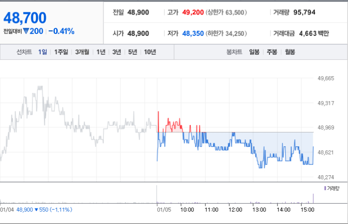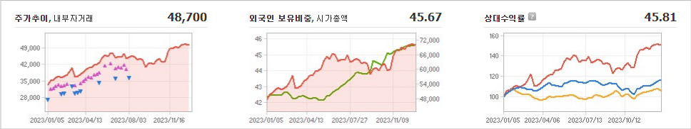 SK스퀘어의 현재 주가는 48,700원이고, 전일 대비 -200원의 변동을 보이고 있습니다. 주주현황을 살펴보면 SK(외 10인)이 지분의 30.59%를 소유하고 있습니다. SK스퀘어는 복합 산업 기업으로, 장중 기준으로 주가는 48,700원입니다. 시가 총액은 6조7684억 원이며, 발행 주식수는 138,981,036주입니다. 외국인 보유 비중은 45.67%이며, 장중 거래량은 95,957을 기록했습니다. 또한 매출액은 -758억 원을 달성했습니다.