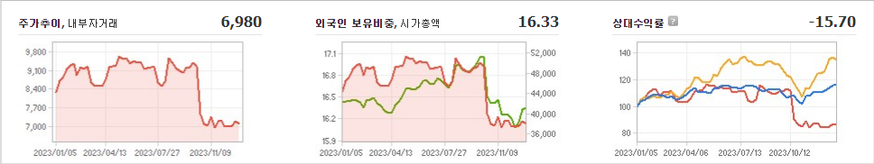 한온시스템은 현재 주가가 6,980원이며 전일 대비 -30원으로 하락하였습니다. 한온시스템의 주주 구성을 살펴보면 한앤코오토홀딩스(외 1인)가 지분의 69.99%를 소유하고 있습니다. 한온시스템은 주로 자동차 부품을 생산하는 기업으로서, 현재 장중 기준 주가는 6,980원입니다. 한온시스템의 시가 총액은 3조 7259억 원이며, 발행 주식수는 533,800,000주입니다. 외국인의 보유 비중은 16.33%이며, 장중 거래량은 415,290주입니다. 또한 매출액은 70,968억 원을 기록하였습니다.