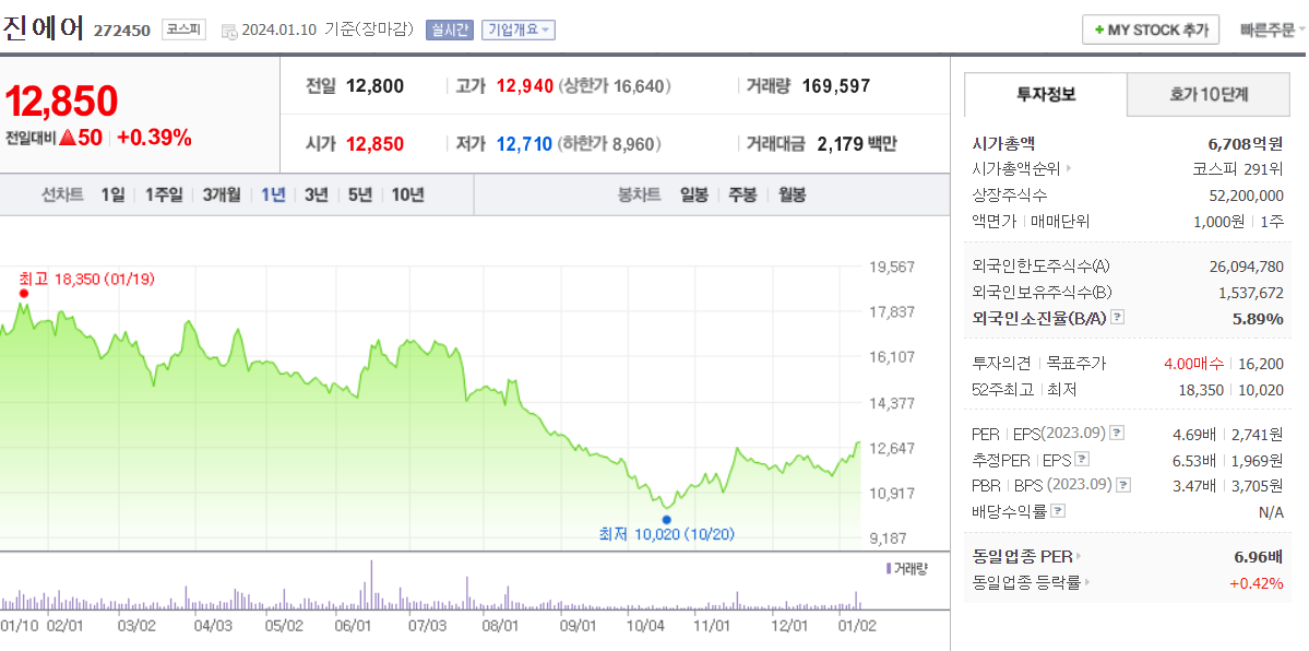 이 글에서는 진에어 주가 전망과 목표 주가, 기업 정보에 대해서 설명합니다. 주식 시장에서 중요한 것은 미래의 기업 가치를 예측하고 선제적으로 움직이는 것입니다. 투자할 종목을 고르기 전에 현재 기업의 현황과 데이터를 확인하는 것이 필요합니다. 진에어 주식의 주요 현황과 투자 정보를 확인하시고 주식 투자를 고민하고 계시다면 유용한 정보들을 모아 놓은 자료를 확인해보세요..