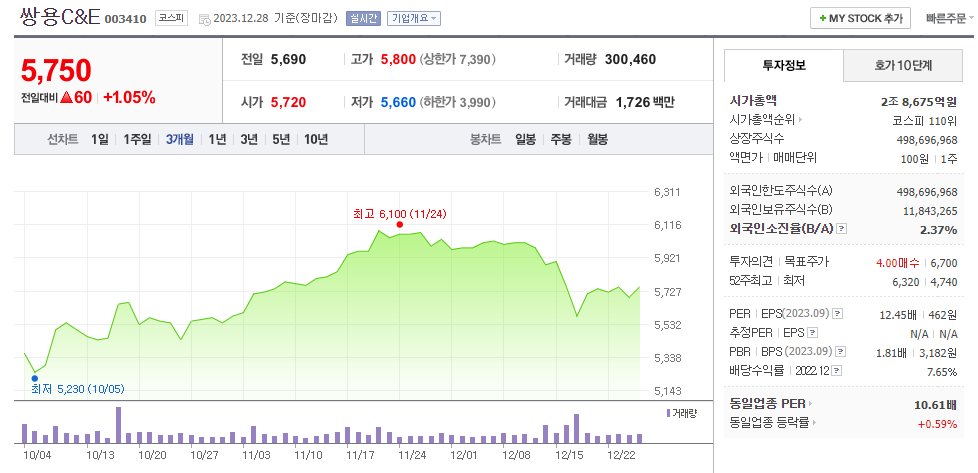 이 글에서는 쌍용C&E 주가 전망과 목표 주가, 기업 정보에 대해서 설명합니다. 주식 투자의 핵심은 현재의 기업 가치보다는 미래의 가치를 예측하며 먼저 대응하는 것입니다. 투자 대상을 결정하기 위해 먼저 현재 기업 상태와 수치를 검토해야 합니다. 쌍용C&E 주식의 주요 현황과 투자 정보를 확인하시고 주식 투자에 도움이 되는 자료들을 정리하여 제공하오니 효율적인 투자를 해보세요..