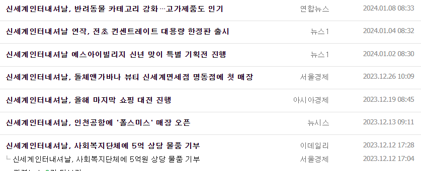 -신세계 그룹 내 종합생활문화기업으로서 해외 유명 패션 브랜드를 국내에 직수입하여 우량 유통채널을 통해 판매하고, 여성복 등 캐주얼 브랜드, 라이프스타일 브랜드를 기획, 유통함. 해외 력셔리 및 자체 코스메틱 브랜드를 기획, 생산, 유통하는 코스메틱부문에서도 사업을 전개 중. 2023년 9월 1일 여성복 브랜드 VOV, G-CUT을 양수하여, 사업 간의 시너지 강화 및 신규 브랜드 발굴 및 육성 등 K패션 전문기업으로 도약하고자함.