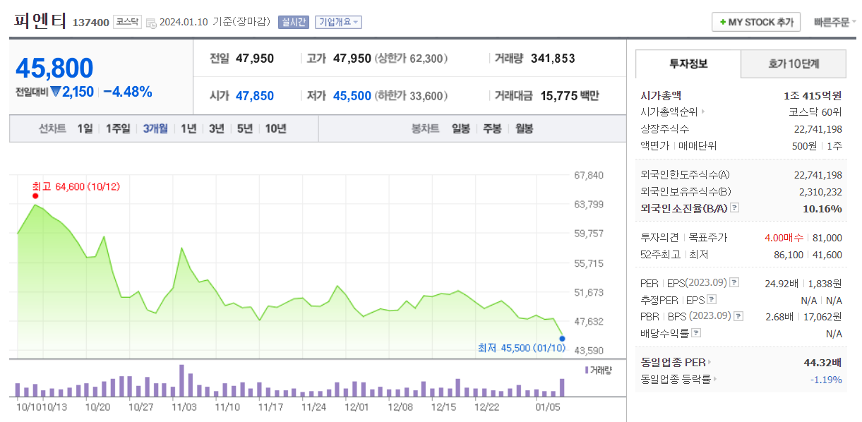피엔티 주식 결론