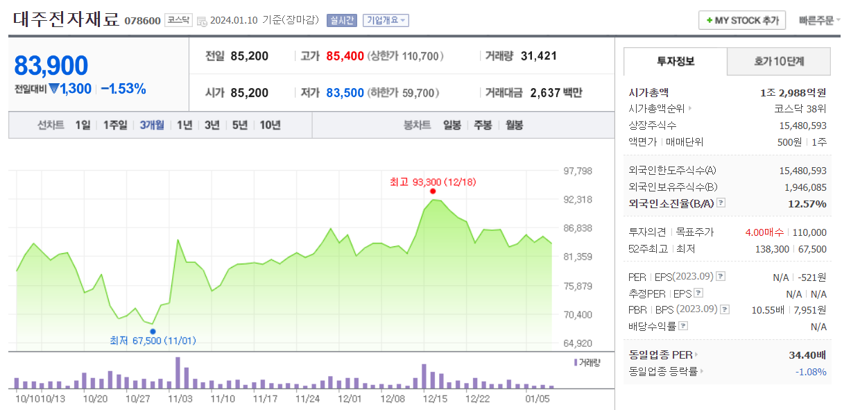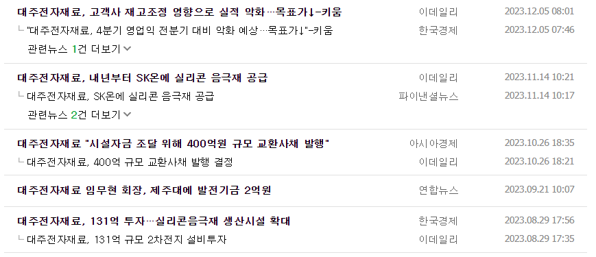 대주전자재료 주식 결론