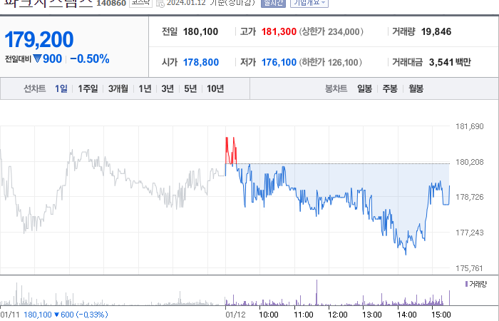 파크시스템스 주가