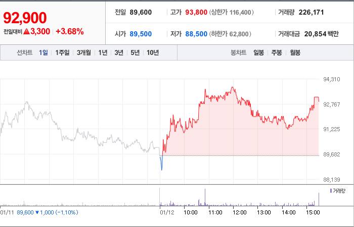 HD현대일렉트릭의 현재 주가는 92,900원이며, 전일 대비 원의 모습을 보이고 있습니다. 주주현황을 살펴보면 현대중공업지주(외 7인)이 지분 40.04%를 소유하고 있습니다. HD현대일렉트릭은 전기장비 기업으로, 장중 기준으로 주가는 92,900원입니다. 시가 총액은 3조3488억 원이며, 발행 주식수는 36,047,135주입니다. 외국인 보유 비중은 21.66%이며, 장중 거래량은 226,453을 기록했습니다. 매출액은 19,055억 원입니다.