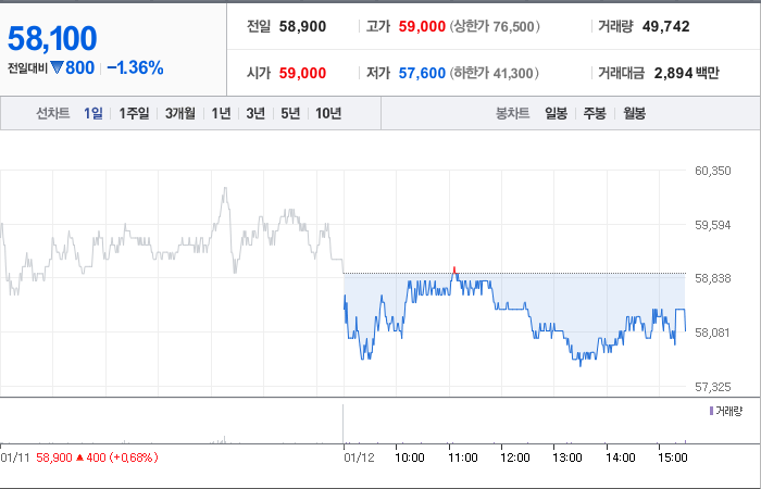 넷마블의 현재 주가는 58,100원이며 전일 대비 -800원으로 하락하였습니다. 주주현황을 살펴보면, 방준혁(외 18인)이 지분의 64.14%를 소유하고 있습니다. 넷마블은 게임 소프트웨어 기업으로, 장중 기준 주가는 58,100원입니다. 시가 총액은 4조 9939억 원이며, 발행 주식수는 85,953,502주입니다. 외국인 보유 비중은 23.86%이며, 장중 거래량은 49,846주를 기록했습니다. 또한, 넷마블은 매출액으로 18,365억 원을 달성했습니다.
