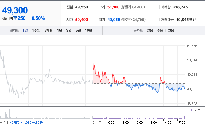두산테스나의 현재 주가는 49,550원이며 전일 대비 -1,050원 하락한 상태입니다. 이 회사는 반도체 및 관련 장비 분야에서 활동하고 있으며, 주주현황을 살펴보면 지분의 30.32%를 소유하고 있습니다. 시가 총액은 8384억 원이며 발행 주식수는 17,006,566주입니다. 외국인 보유 비중은 8.79%이며, 장중 거래량은 407,606주를 기록했습니다. 또한, 매출액은 2,529억 원을 달성했습니다.