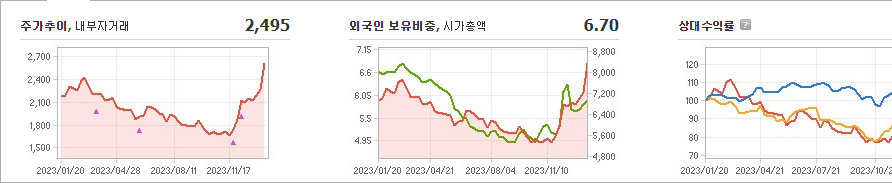 현재 대한해운의 주가는 2,495원이며 전일 대비 -315원의 하락을 보이고 있습니다. 주주현황을 살펴보면 에스엠하이플러스 외 3인이 지분의 49.35%를 소유하고 있습니다. 대한해운은 해상운수 기업으로, 현재 주가는 2,495원입니다. 시가 총액은 7963억 원이며 발행 주식수는 319,177,460주입니다. 외국인 보유 비중은 6.70%이며, 장중 거래량은 47,510,559주입니다. 또한, 매출액은 10,346억 원을 달성했습니다.