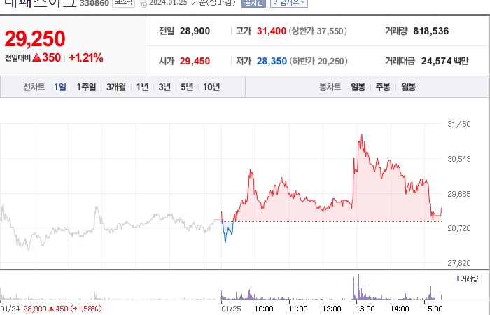 네패스아크는 현재 주가가 28,900원으로 전일 대비 상승하고 있습니다. 회사의 주주현황을 살펴보면, 네패스아크 지분의 54.96%가 소유되고 있습니다. 네패스아크는 반도체 및 관련 장비 기업으로, 현재 주식 시장에서의 가격은 28,900원입니다. 회사의 시가 총액은 3564억 원이며, 발행 주식수는 12,184,045주입니다. 외국인 보유 비중은 2.41%이며, 거래량은 장중에 289,055주를 기록했습니다. 또한, 네패스아크는 매출액으로 906억 원을 달성했습니다.