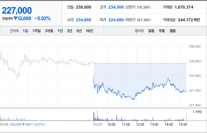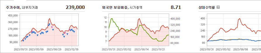 에코프로비엠의 현재 주가는 239,000원이며 전일 대비 -500원 하락했습니다. 에코프로비엠의 주주 구성은 에코프로(외 11인)이 50.34%의 지분을 소유하고 있습니다. 이 회사는 전자 장비 및 기기 분야에 종사하고 있으며, 현재 주가는 239,000원입니다. 에코프로비엠의 시가 총액은 22조2009억 원이며 발행 주식수는 97,801,344주입니다. 외국인 보유 비중은 8.71%이고, 장중 거래량은 808,713주입니다. 또한, 이 회사의 매출액은 57,205억 원입니다.