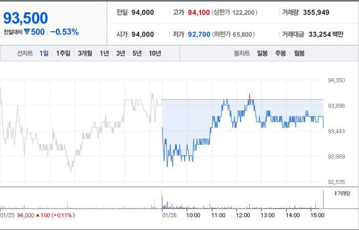 LG전자의 현재 주가는 93,500원이며 전일 대비 -500원의 하락을 보였습니다. 주주현황을 살펴보면 LG(외 2인)이 지분의 33.68%를 소유하고 있습니다. LG전자는 내구소비재 기업으로 분류되며 현재 주가는 93,500원입니다. 시가 총액은 15조3011억 원이며 발행 주식수는 163,647,814주입니다. 외국인 보유 비중은 28.59%이며 장중 거래량은 359,923주를 기록했습니다. 또한, LG전자는 매출액으로 611,237억 원을 달성했습니다.