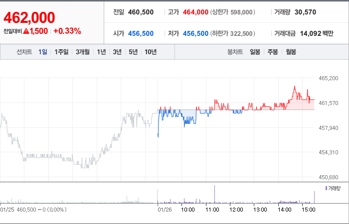 고려아연의 현재 주가는 462,000원이며 전일 대비 -7.60원의 변동을 보이고 있습니다. 주주현황을 살펴보면 영풍(외 64인)이 지분 47.46%를 소유하고 있습니다. 고려아연은 금속 및 광물 기업으로, 현재 주가는 462,000원입니다. 시가 총액은 9조6598억 원이며 발행 주식수는 20,908,588주입니다. 외국인 보유 비중은 17.95%이며, 장중 거래량은 30,625주를 기록했습니다. 또한, 매출액은 72,900억 원을 달성했습니다.
