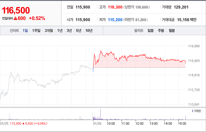 HD한국조선해양의 현재 주가는 116,500원이며 전일 대비 -7.47원의 하락세를 보이고 있습니다. 주주현황을 살펴보면 현대중공업지주(외 10인)이 지분의 36.66%를 소유하고 있습니다. 시가 총액은 8조 2451억 원이며 발행 주식수는 70,773,116주입니다. 외국인 보유 비중은 26.35%이고, 장중 거래량은 129,745주를 기록했습니다. 또한, 매출액은 153,072억 원을 달성했습니다.