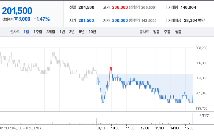 하이브는 현재 주가가 204,500원으로 전일 대비 -12.42원 하락한 상태입니다. 주주현황을 살펴보면 방시혁(외 11인)이 지분의 50.77%를 소유하고 있습니다. 하이브는 미디어 기업으로, 장중 기준 주가는 204,500원입니다. 시가 총액은 8조3929억 원이며 발행 주식수는 41,652,097주입니다. 외국인 보유 비중은 21.15%이며, 장중 거래량은 132,470입니다. 또한 매출액은 15,695억 원을 달성했습니다.