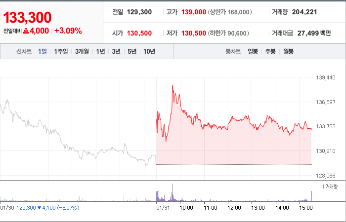 코스모신소재의 현재 주가는 129,300원이고, 전일 대비로 -4,100원의 하락을 보이고 있습니다. 주주현황을 살펴보면, 코스모화학(외 7인)이 지분의 29.28%를 소유하고 있습니다. 코스모신소재는 화학 기업으로, 장중 기준으로 주가는 129,300원입니다. 시가 총액은 4조3337억 원이며, 발행 주식수는 32,510,756주입니다. 외국인 보유 비중은 13.49%이고, 장중 거래량은 145,522를 기록했습니다. 또한, 매출액은 5,408억 원을 달성했습니다.