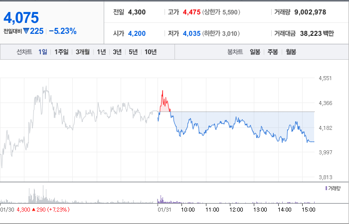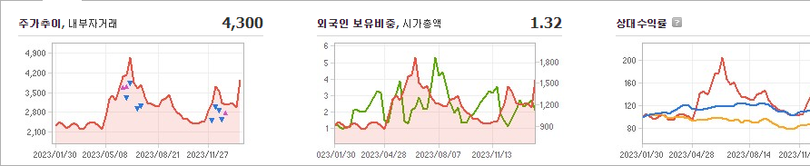 인성정보는 IT 서비스 기업으로, 현재 주가는 4,300원이며 전일 대비 원의 모습을 보이고 있습니다. 윤재승(외 2인)은 인성정보의 주주로서 지분 18.64%를 소유하고 있습니다. 인성정보의 시가 총액은 1598억 원이며 발행 주식수는 39,215,380주입니다. 외국인 보유 비중은 1.32%이며 장중 거래량은 35,199,037주를 기록했습니다. 또한 인성정보는 매출액으로 2,451억 원을 달성했습니다.