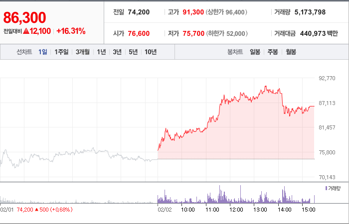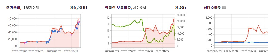 신성델타테크의 현재 주가는 86,300원이며 전일 대비 원의 모습을 보이고 있습니다. 주주현황을 살펴보면 구본상(외 8인)이 지분 33.60%를 소유하고 있습니다. 신성델타테크는 내구소비재 기업으로 장중 기준으로 주가는 86,300원입니다. 시가 총액은 2조3719억 원이며 발행 주식수는 27,483,948주입니다. 외국인 보유 비중은 8.86%이며 장중 거래량은 5,217,159를 기록했습니다. 매출액은 6,477억 원을 달성했습니다.