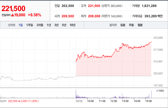 NAVER의 현재 주가는 221,500원이며 전일 대비 -2.64원의 변동을 보이고 있습니다. 주주 현황을 살펴보면 BlackRock Fund Advisors(외 13인)이 지분의 9.34%를 소유하고 있습니다. NAVER는 인터넷 서비스 기업으로, 현재 주가는 221,500원입니다. 시가 총액은 35조 9735억 원이며 발행 주식수는 162,408,594주입니다. 외국인 보유 비중은 48.56%이며, 장중 거래량은 1,841,501주입니다. 매출액은 71,336억 원입니다.