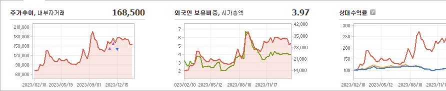 레인보우로보틱스의 현재 주가는 168,500원이며 전일 대비 원의 모습을 보이고 있습니다. 주주 현황을 살펴보면 오준호(외 7인)이 지분의 58.79%를 소유하고 있습니다. 이 회사는 기계 기업으로 장중 기준 주가는 168,500원입니다. 시가 총액은 3조 2689억 원이며 발행 주식수는 19,399,858주입니다. 외국인 보유 비중은 3.97%이며 장중 거래량은 1,852,739를 기록했습니다. 또한, 매출액은 105억 원을 달성했습니다.