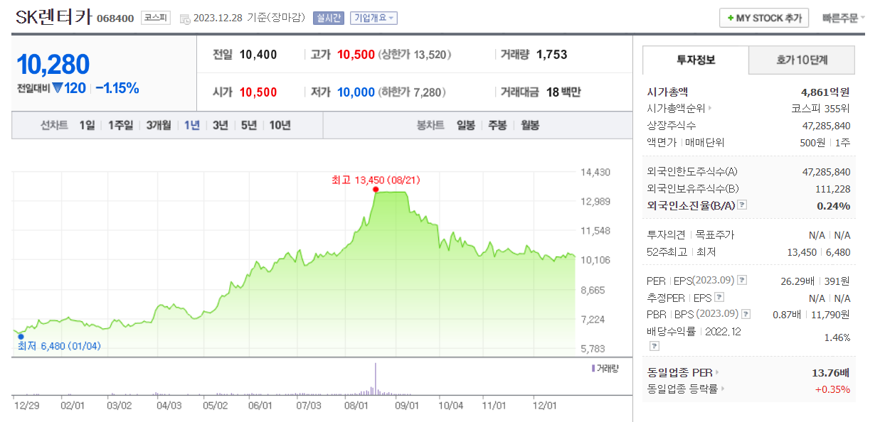 SK렌터카 주식 결론