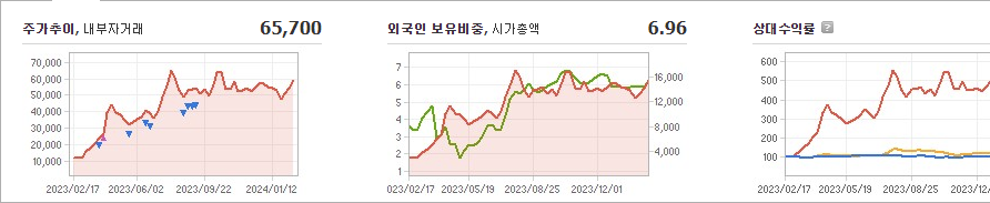 TCC스틸의 현재 주가는 65,700원이고, 전일 대비 원의 모습을 보이고 있습니다. 주주현황을 살펴보면 손봉락(외 16인)이 지분의 33.49%를 소유하고 있습니다. TCC스틸은 금속 및 광물 기업으로, 장중 기준으로 주가는 65,700원입니다. 시가 총액은 1조 9896억 원이며, 발행 주식수는 26,213,697주입니다. 외국인 보유 비중은 6.96%이며, 장중 거래량은 2,465,535를 기록했습니다. 또한, 매출액은 4,674억 원을 달성했습니다.