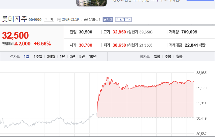 롯데지주 주가