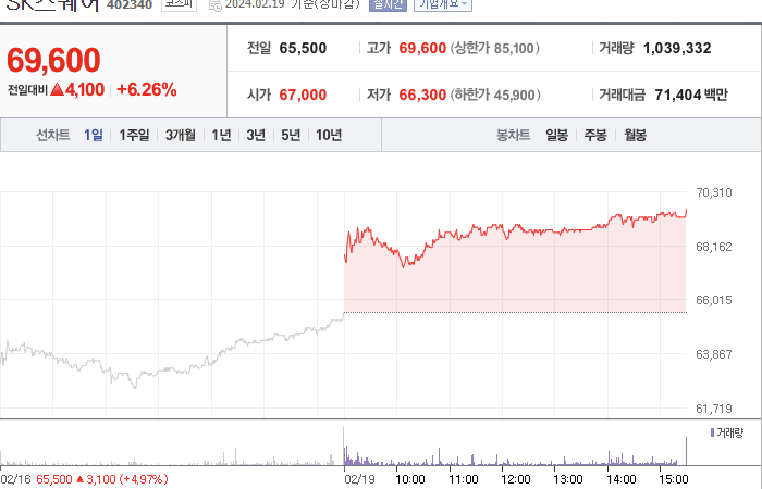 SK스퀘어 주가