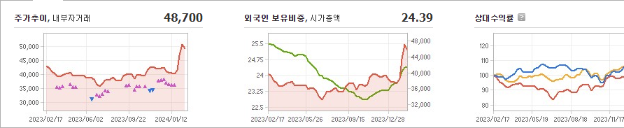 GS 주식의 현재 가격은 48,700원이고, 전일 대비 원의 움직임을 보이고 있습니다. GS의 대주주는 허창수(외 57인)로, 지분의 53.23%를 소유하고 있습니다. GS는 석유 및 가스 기업으로, 현재 주식의 가격은 48,700원입니다. GS의 시가 총액은 4조7851억 원이며, 발행된 주식의 수는 92,915,378주입니다. 외국인의 보유 비중은 24.39%이며, 거래량은 장중에 163,749주를 기록했습니다. GS의 매출액은 194,865억 원입니다.