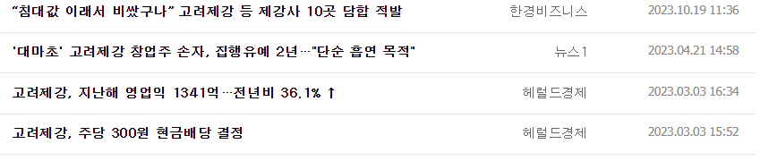 이 글에서는 고려제강 주가 전망과 목표 주가, 기업 정보에 대해서 설명합니다. 주식 시장에서 중요한 것은 미래의 기업 가치를 예측하고 선제적으로 움직이는 것입니다. 투자할 종목을 고르기 전에 현재 기업의 현황과 데이터를 확인하는 것이 필요합니다. 고려제강 주식의 주요 현황과 투자 정보를 확인하시고 주식 투자에 도움을 줄 자료들을 모아 두었으니 투자에 도움을 받으시길 바랍니다..