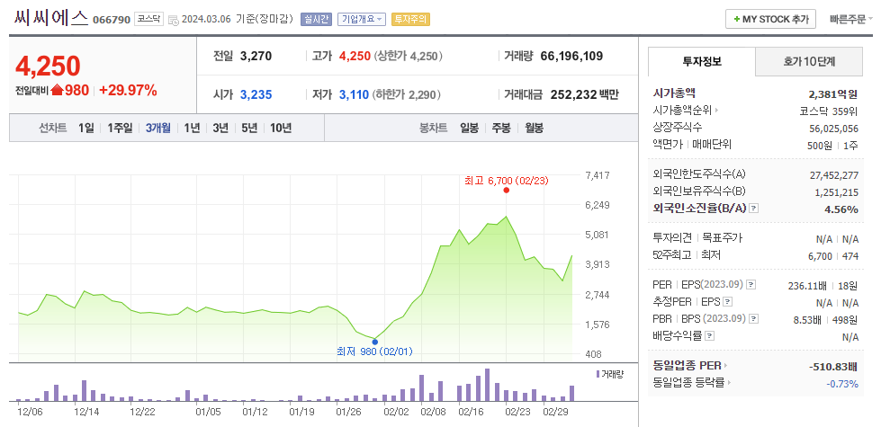 이 글에서는 씨씨에스 주가 전망과 목표 주가, 기업 정보에 대해서 설명합니다. 주식 투자의 핵심은 현재의 기업 가치보다는 미래의 가치를 예측하며 먼저 대응하는 것입니다. 투자 대상을 결정하기 위해 먼저 현재 기업 상태와 수치를 검토해야 합니다. 씨씨에스 주식의 주요 현황과 투자 정보를 확인하시고 주식 투자에 도움이 될 만한 정보들을 모아 놓았으니 투자 시 참고하시기 바랍니다..