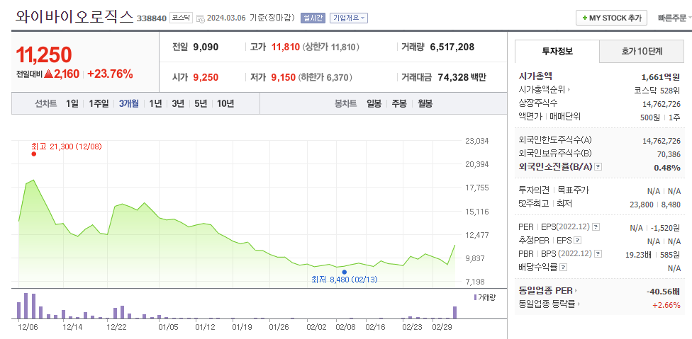 와이바이오로직스 주식 결론