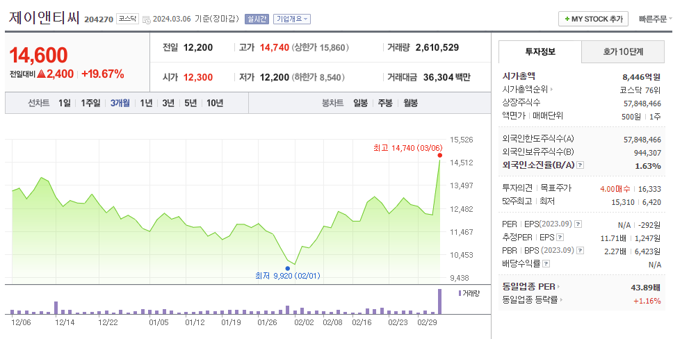 이 글에서는 제이앤티씨 주가 전망과 목표 주가, 기업 정보에 대해서 설명합니다. 주식 거래에서 중요한 부분은 현재 기업 가치보다는 미래의 기업 가치를 예측하고 먼저 행동하는 것입니다. 투자할 종목을 고르기 전에 현재 기업의 상황과 지표를 살펴보는 것이 중요합니다. 제이앤티씨 주식의 주요 현황과 투자 정보를 확인하시고 주식 투자에 도움을 줄 자료들을 모아 두었으니 투자 결정에 도움을 받으시길 바랍니다..