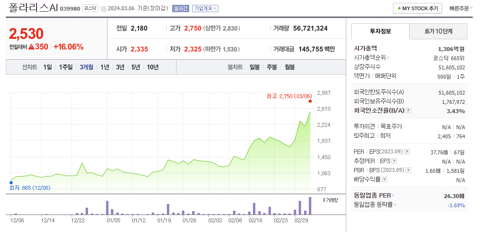 이 글에서는 폴라리스AI 주가 전망과 목표 주가, 기업 정보에 대해서 설명합니다. 주식 거래에서 중요한 부분은 현재 기업 가치보다는 미래의 기업 가치를 예측하고 먼저 행동하는 것입니다. 투자할 종목을 고르기 전에 현재 기업의 상황과 지표를 살펴보는 것이 중요합니다. 폴라리스AI 주식의 주요 현황과 투자 정보를 확인하시고 주식 투자에 도움이 될 만한 정보들을 모아 놓았으니 투자를 고려하실 때 참고하세요..