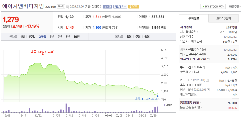 에이치앤비디자인 주식 결론