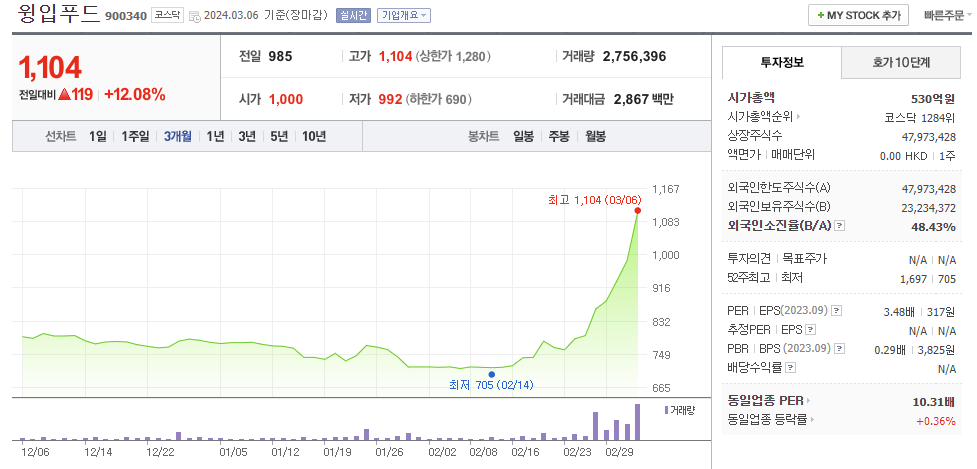 윙입푸드 주가 분석