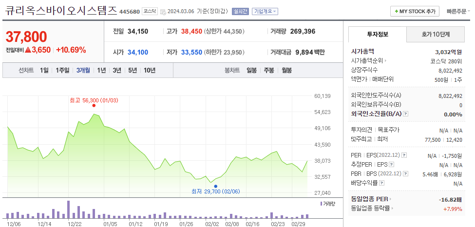 큐리옥스바이오시스템즈 주식 결론