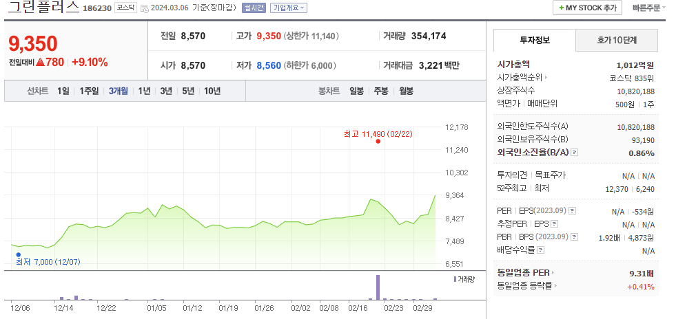 그린플러스 주가 분석